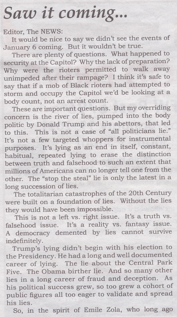 By David Friedman, in Smithtown News Jan 14, 2021